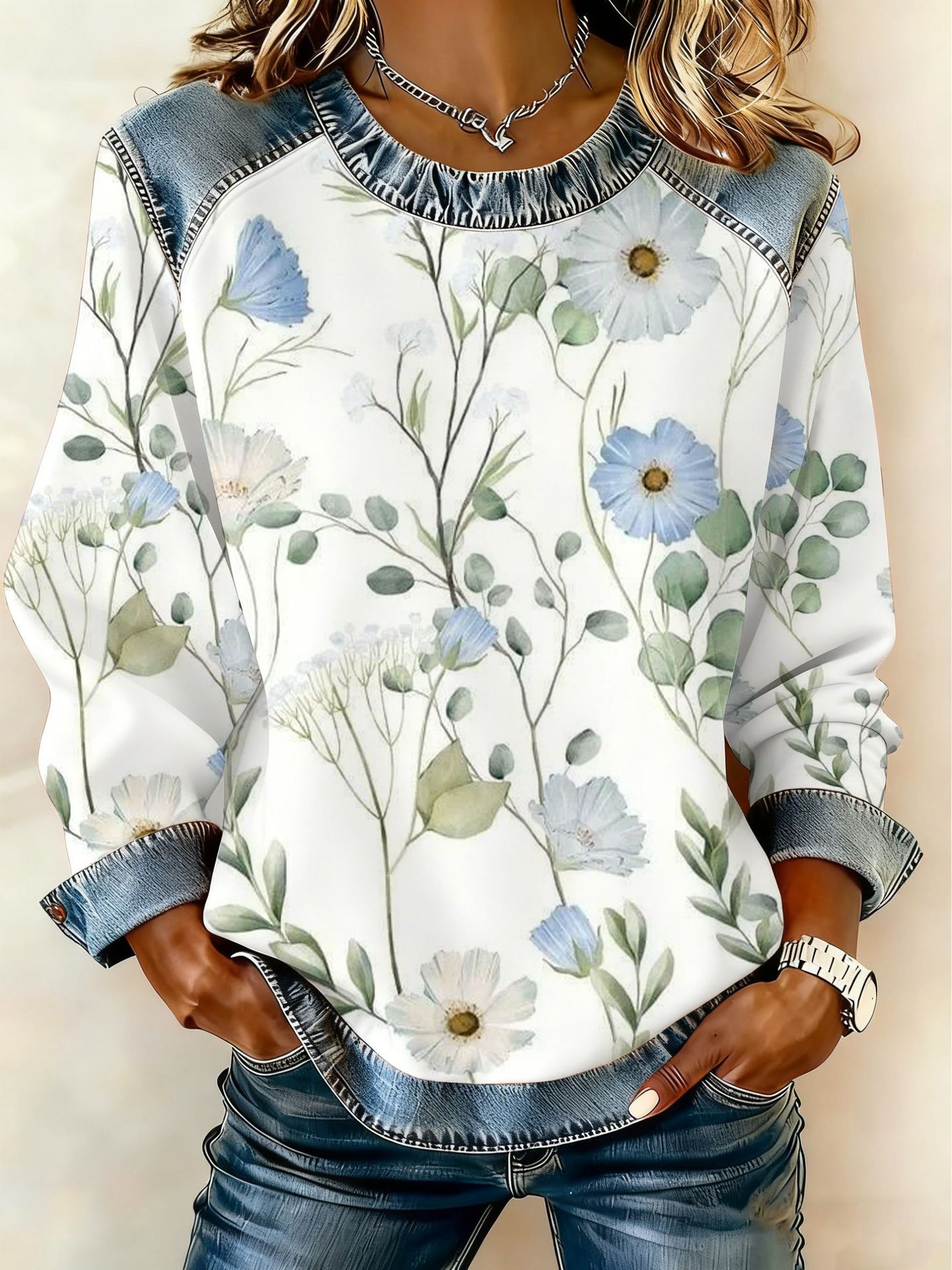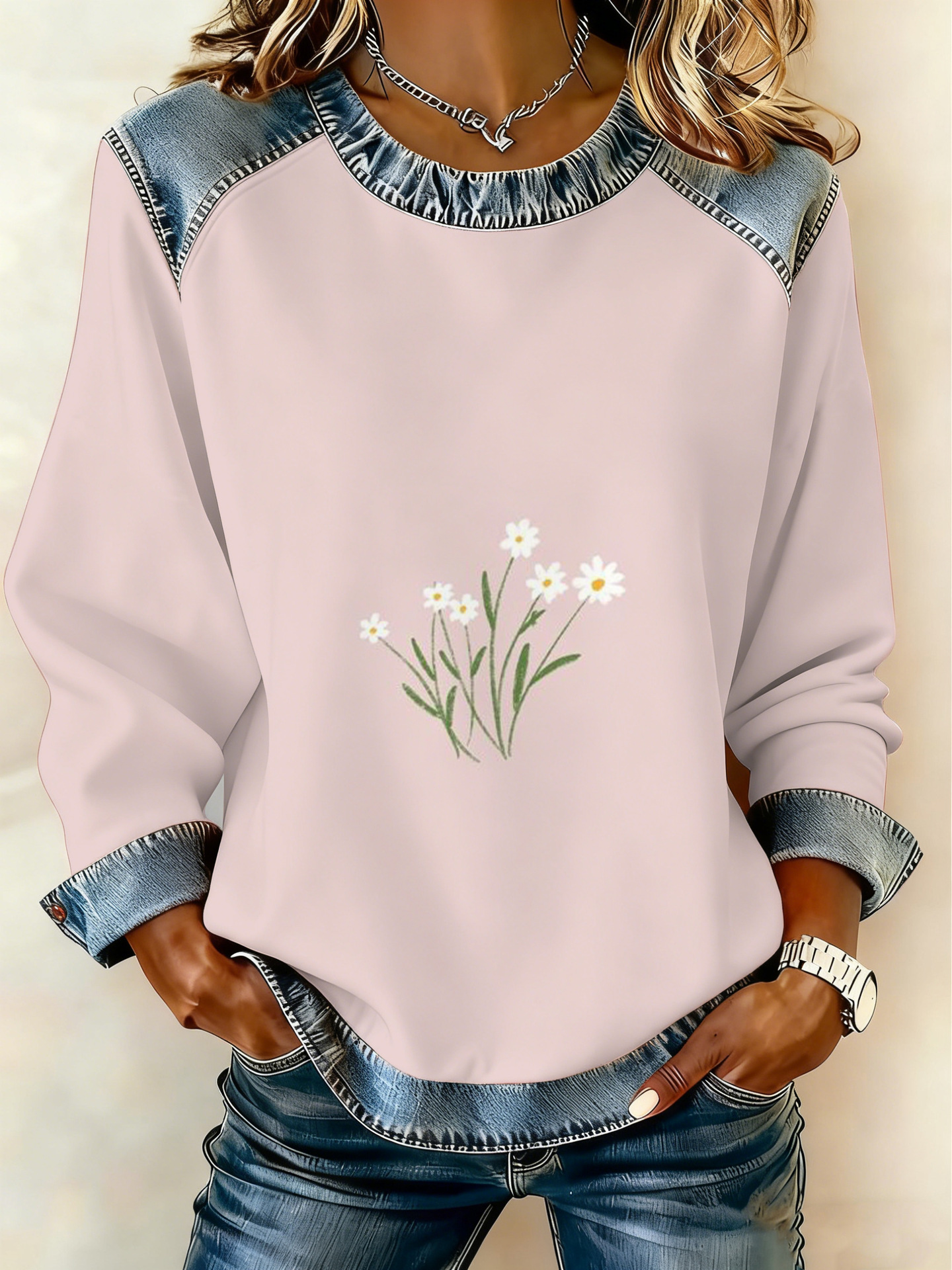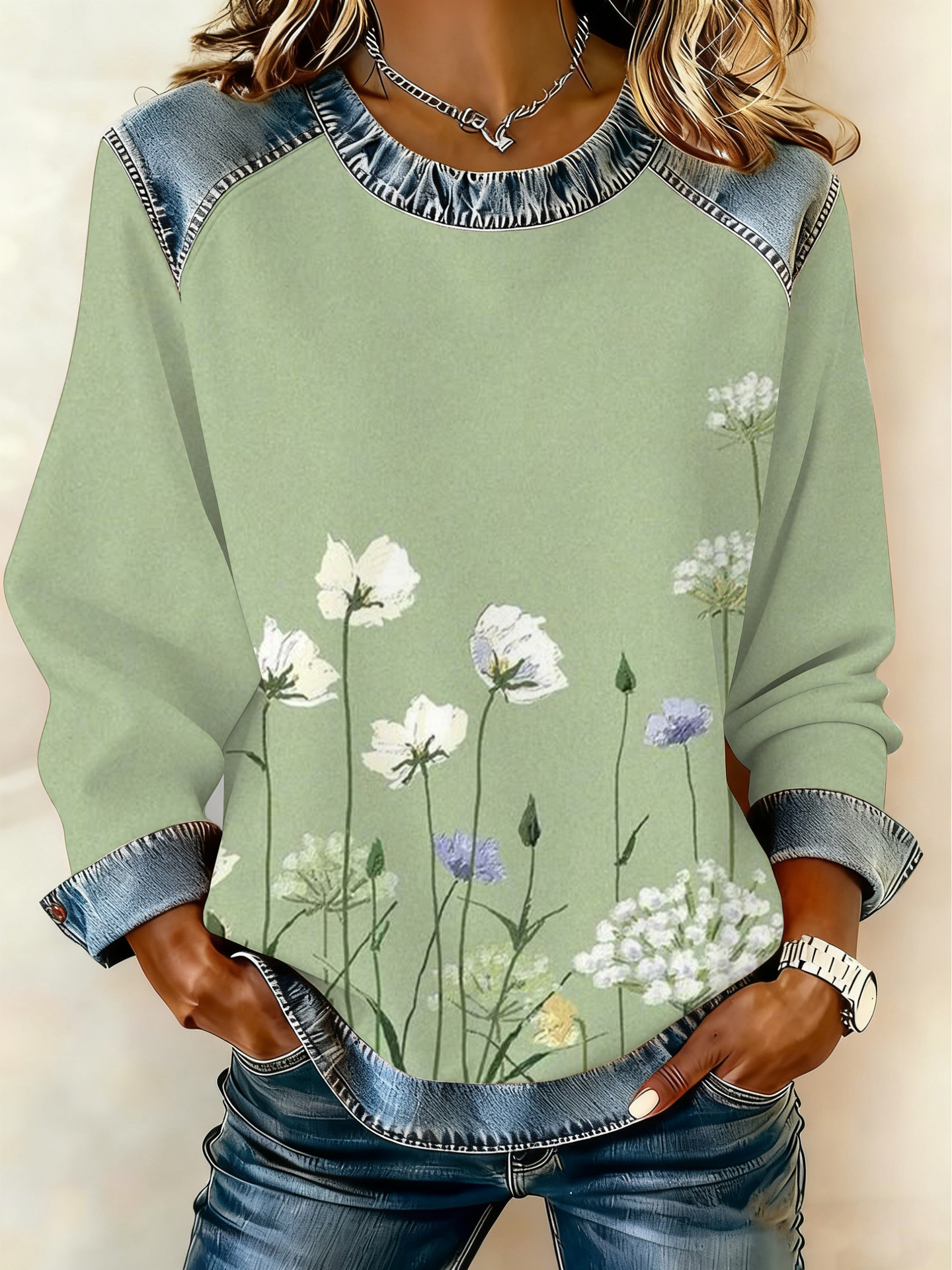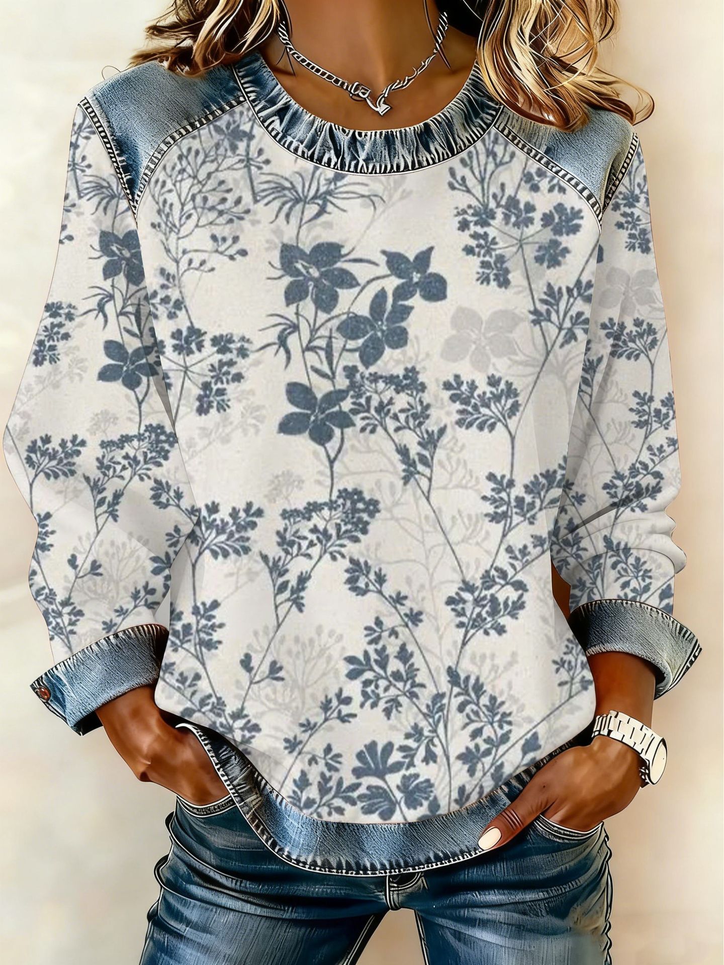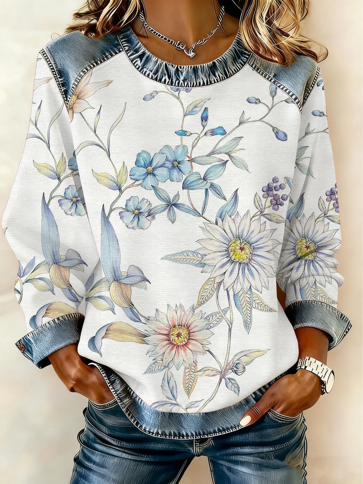 Style: Pullover, round neck, long sleeve