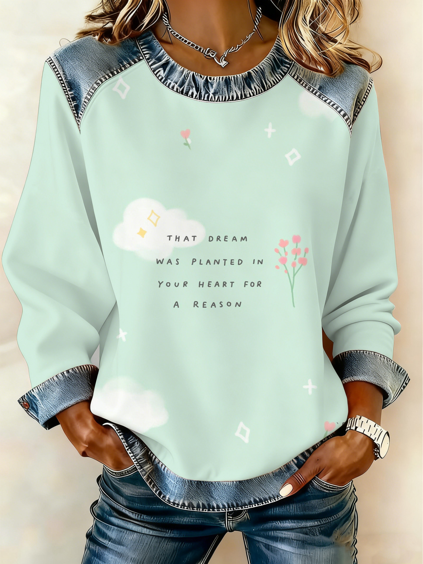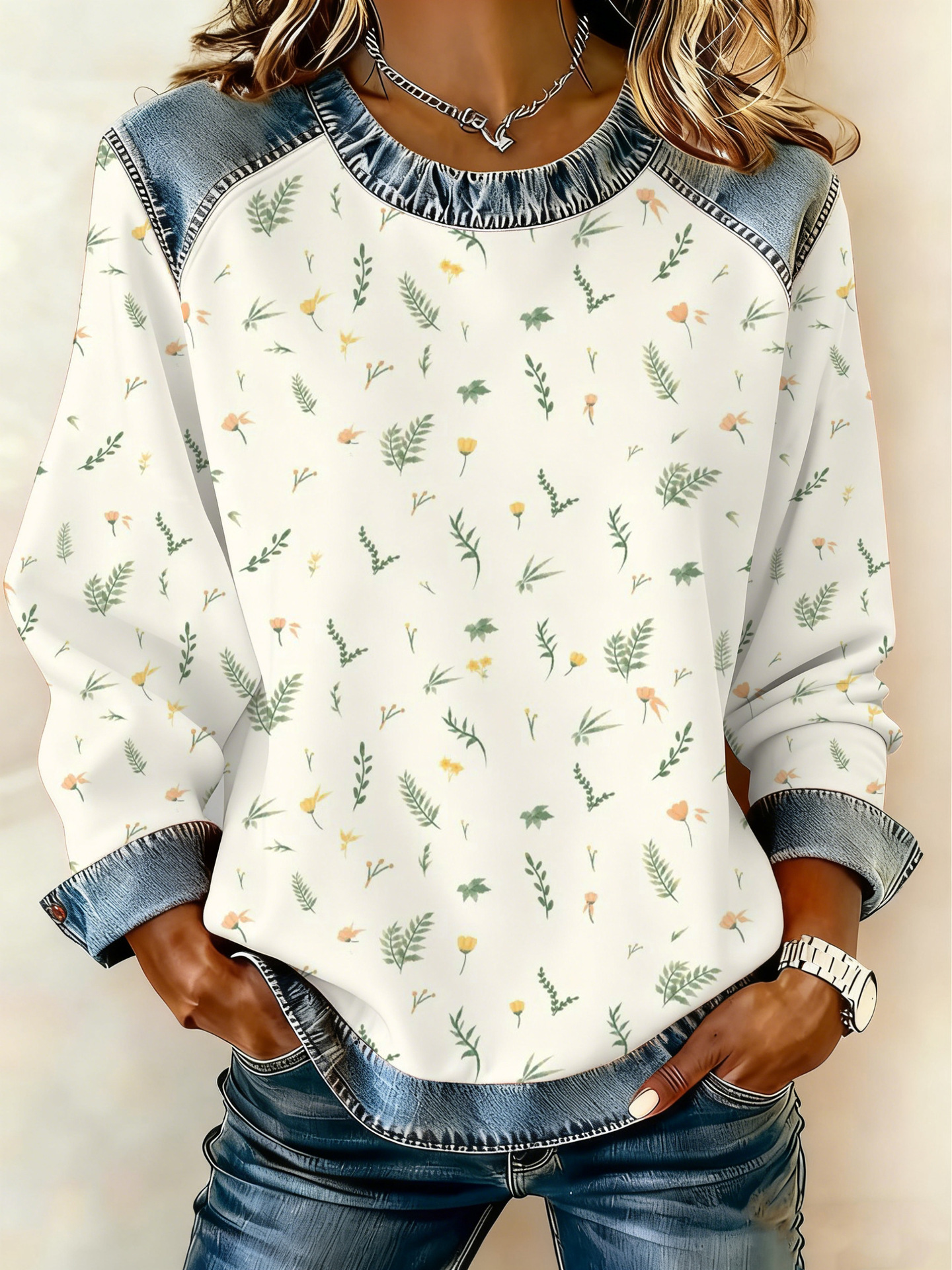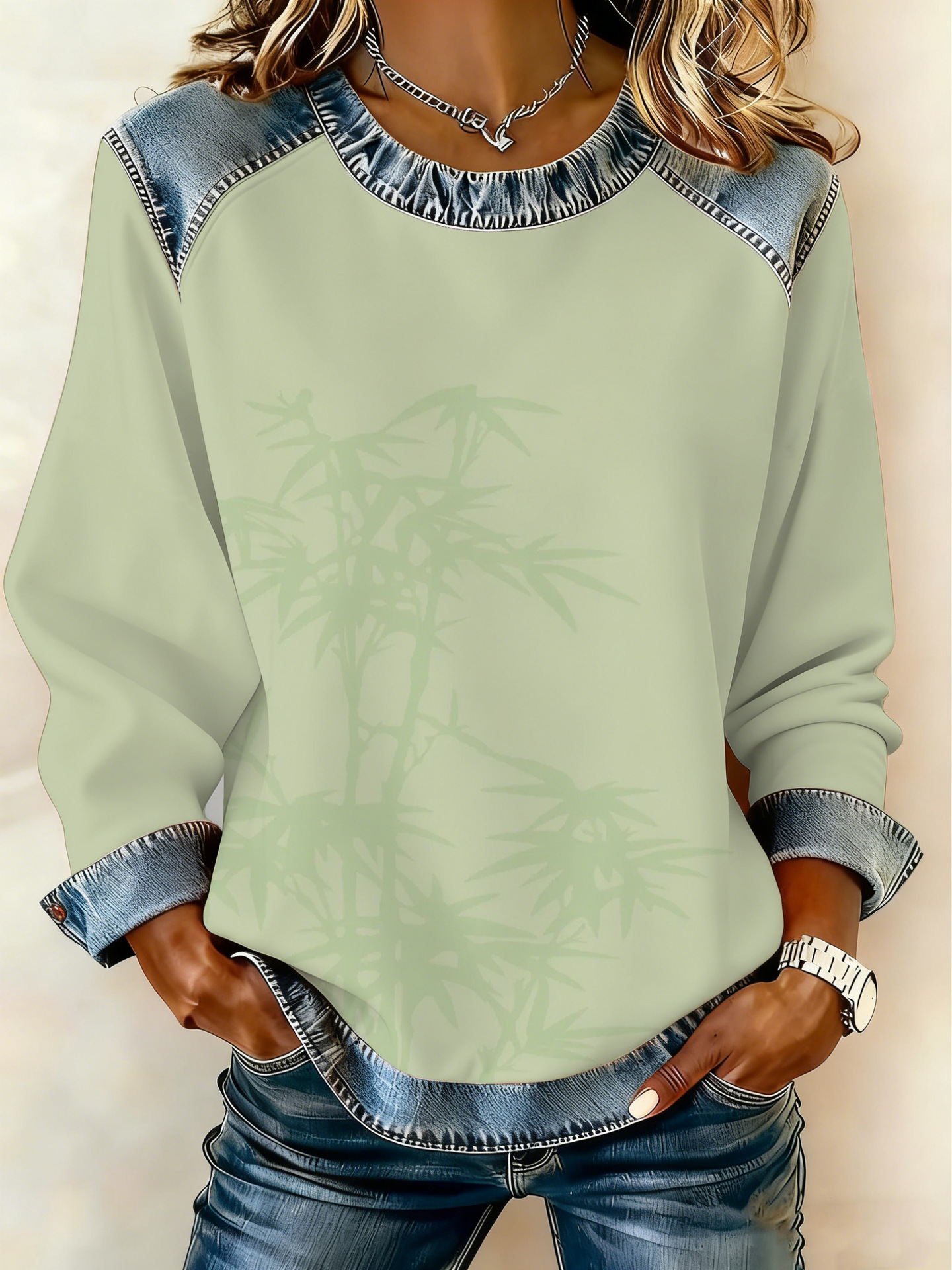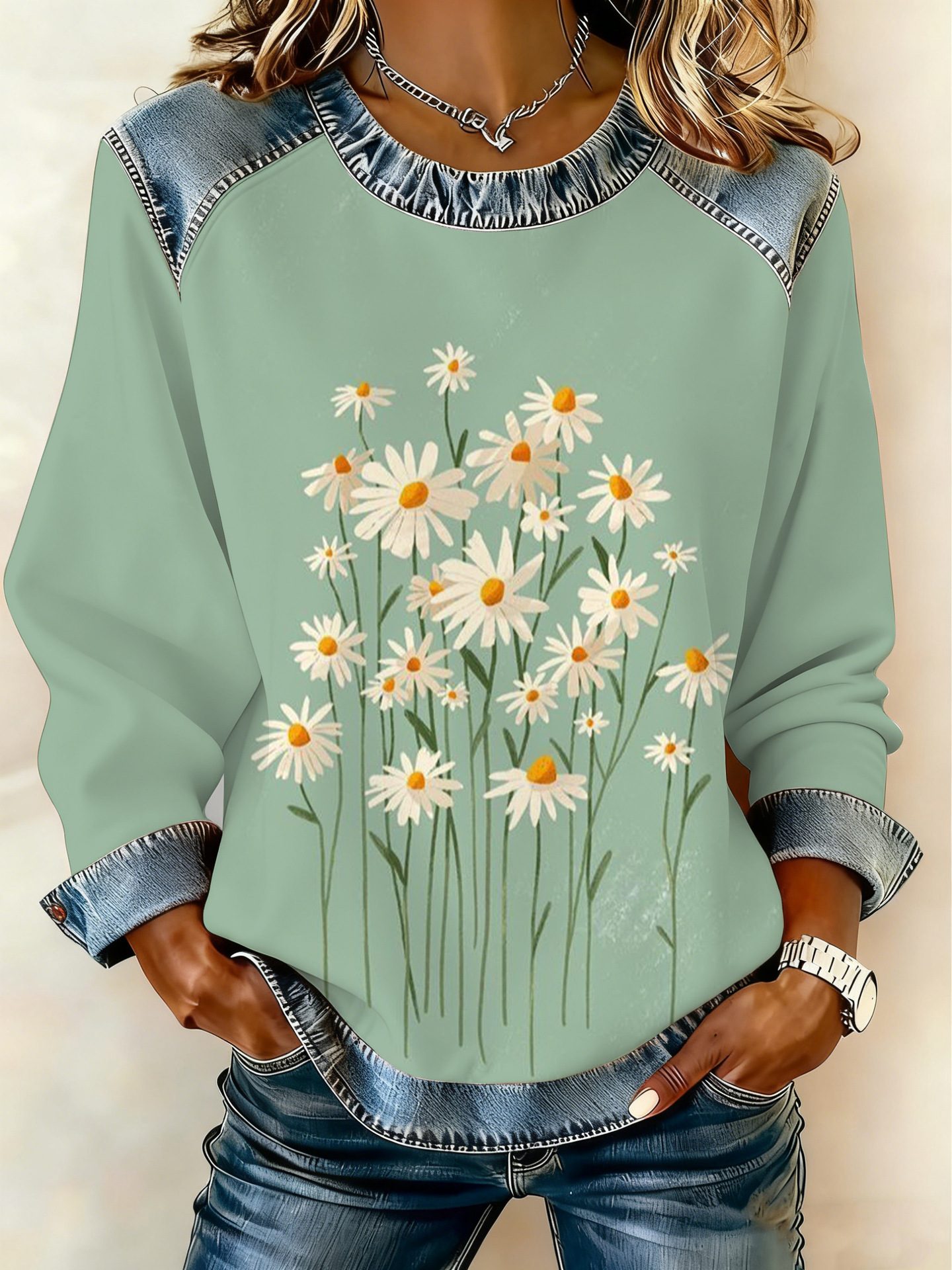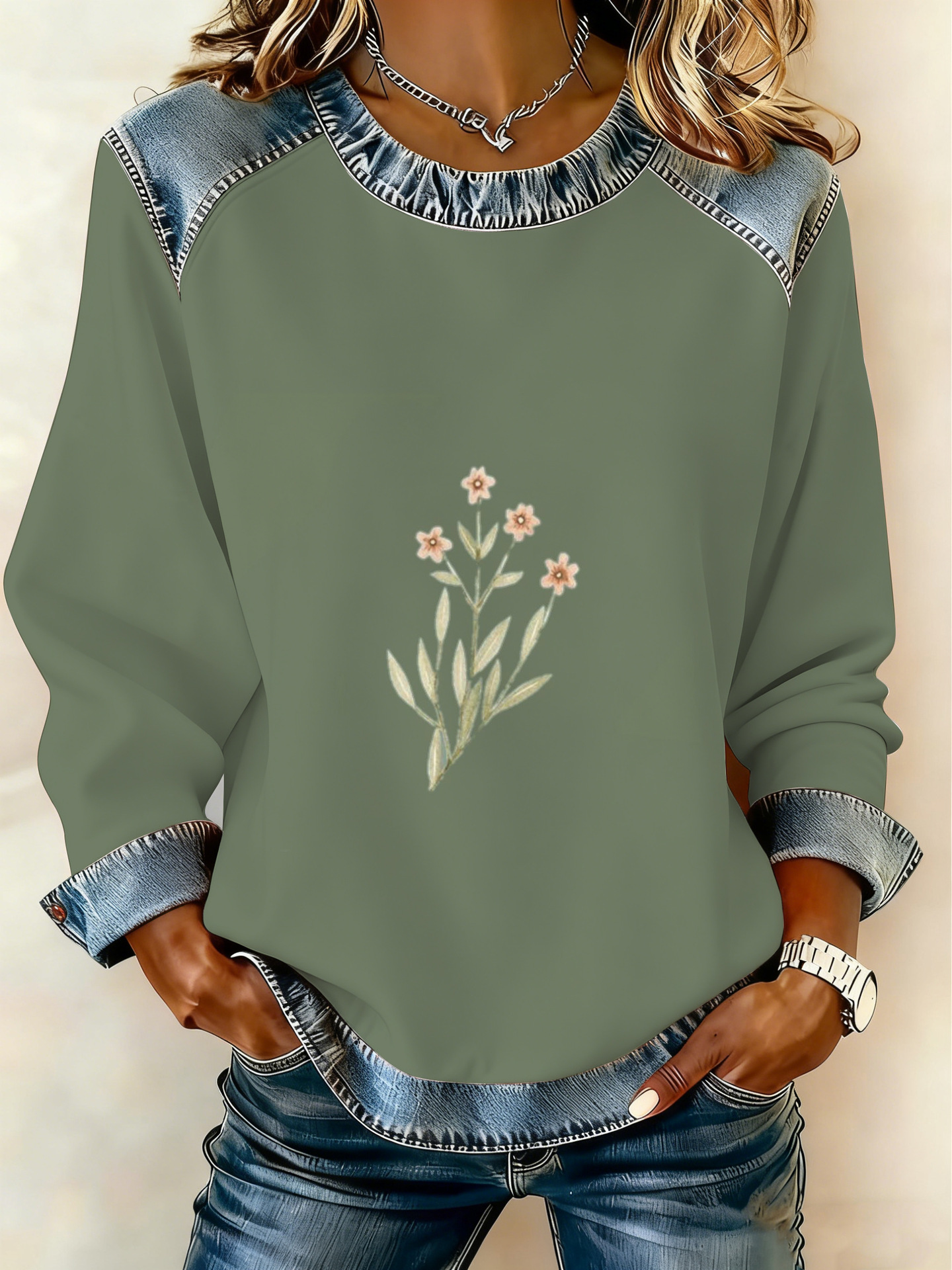 Style: Pullover, round neck, long sleeve
